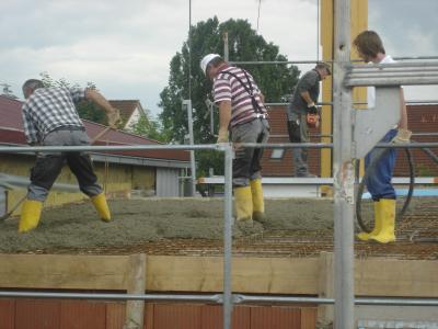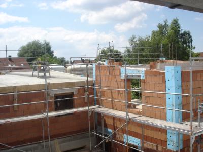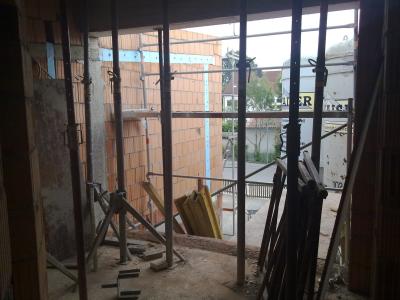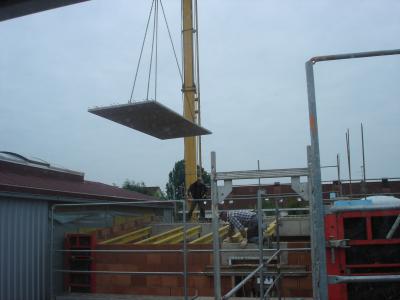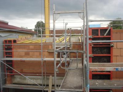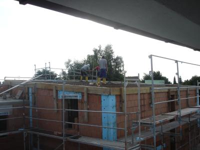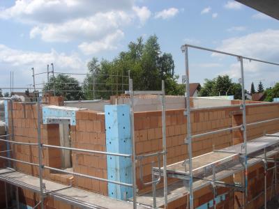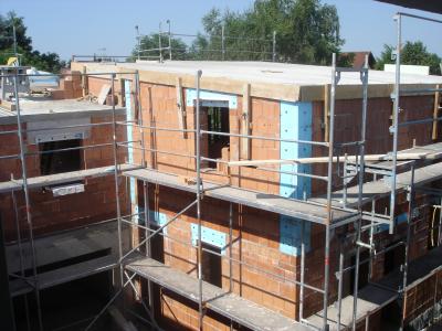 die Decken des 1. Stock sind jetzt drauf und alle Innenwände gemauert.
