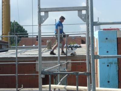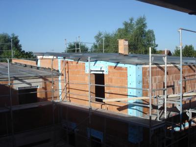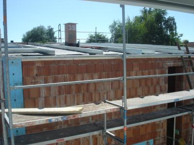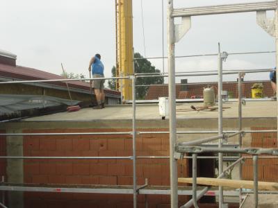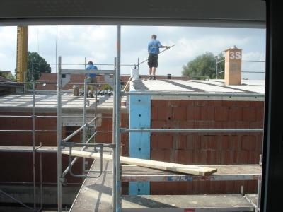 diese Woche wurde das Dach "geteert" und für die Dämmung vorbereitet + die Holz-Konstruktion des Wintergartens "eingebaut":