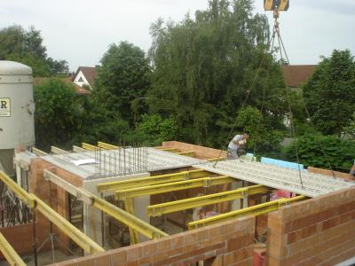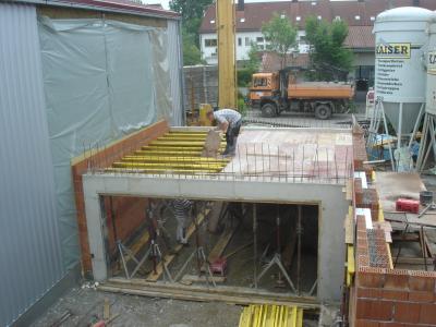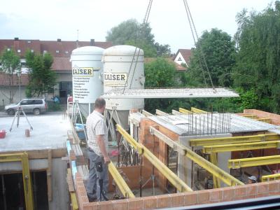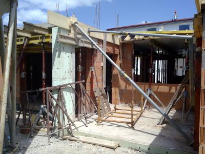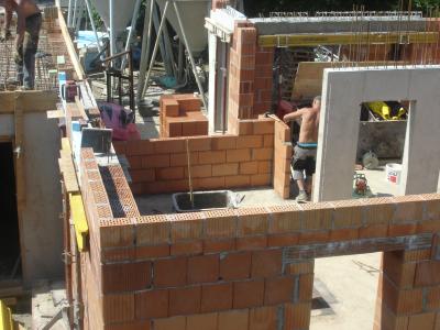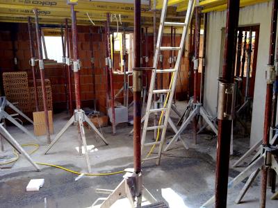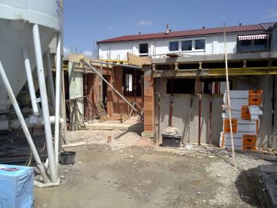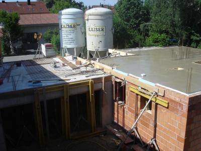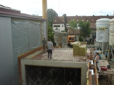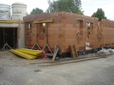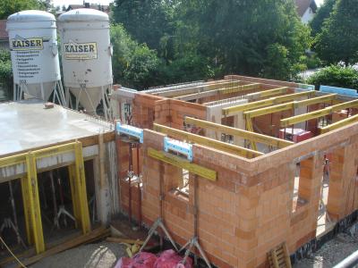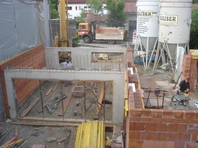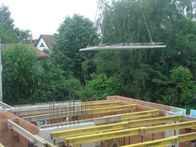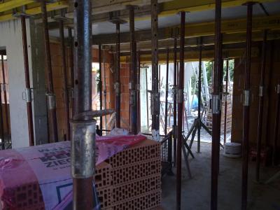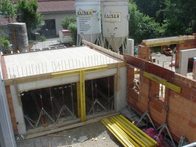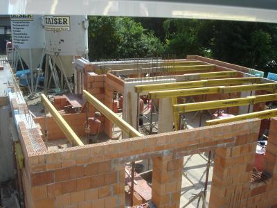 die Decken des 1. Stock sind jetzt drauf und alle Innenwände gemauert.