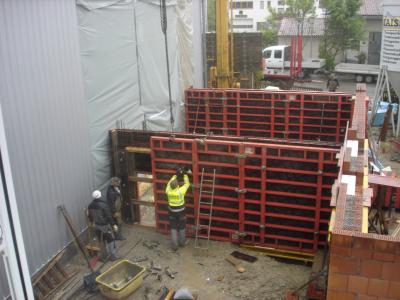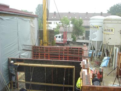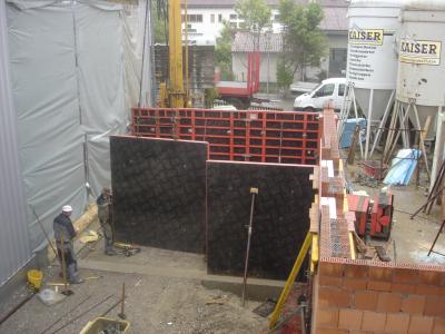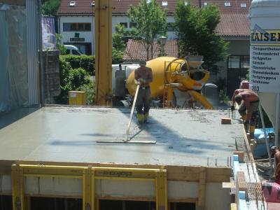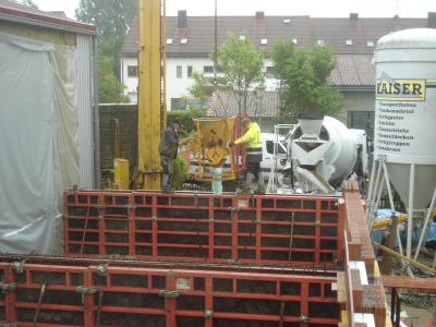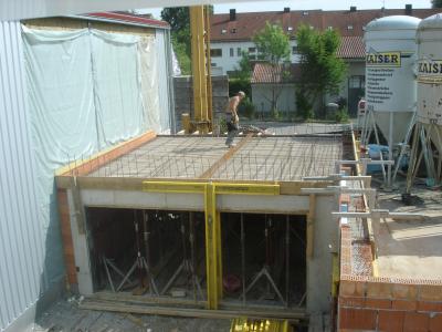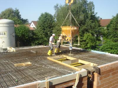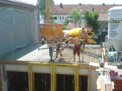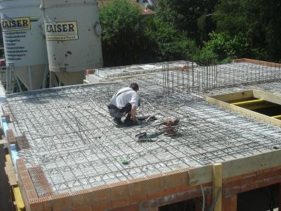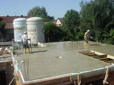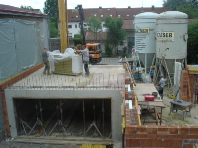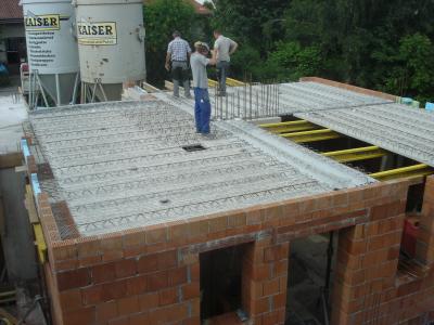 diese Woche wurden die Leer-Rohre fürs Erdgeschoß gelegt und die gesamte Decke betoniert + die ersten Innenwände gemauert: