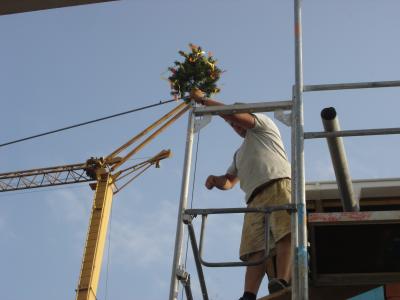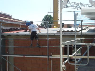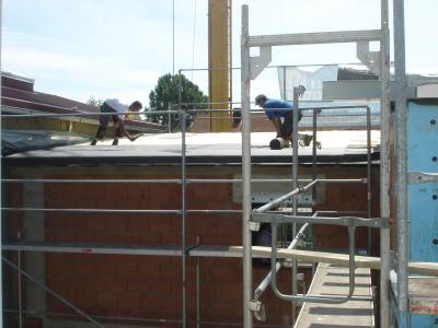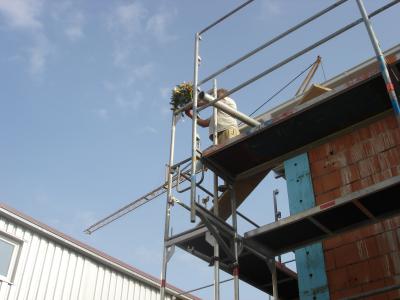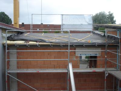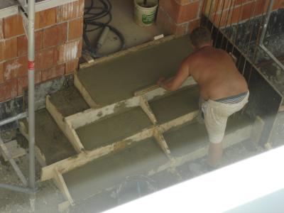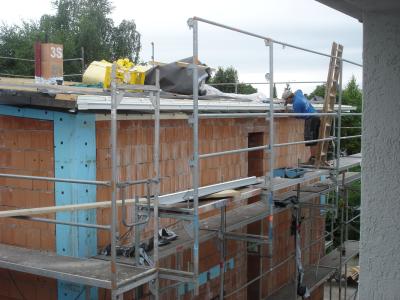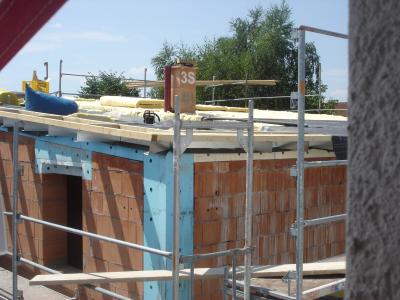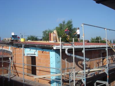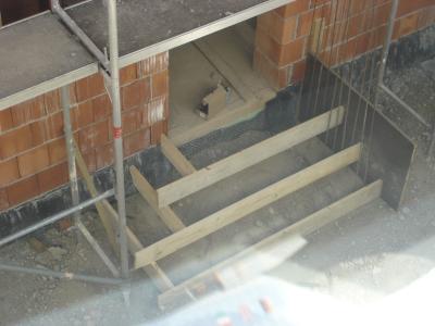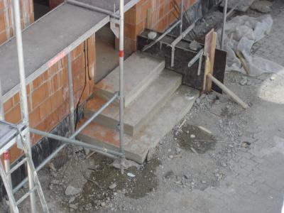 die Treppe am Hauseingang ist fertig und das Dach gedämmt.