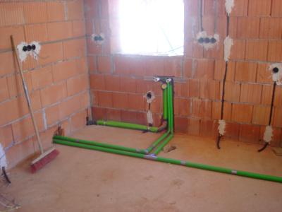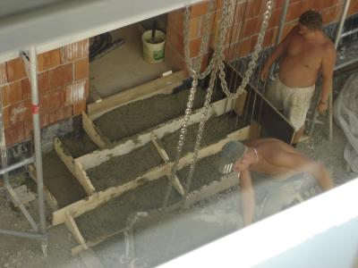 Gleichzeitig wurden die Dosen für Schalter und Steckdosen sowie die ersten Rohre und Leitungen gelegt.