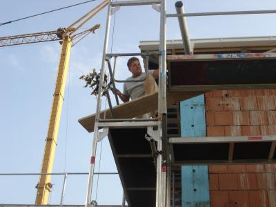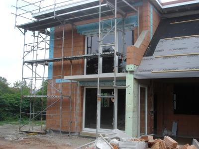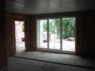 diese Woche haben wir die Panorama-Scheibe vom Wintergarten eingesetzt und es wurde innen verputzt: